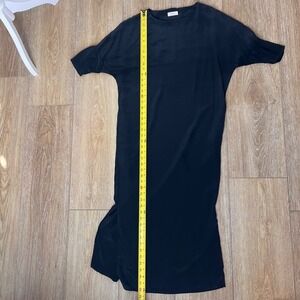 Elegant black silk midi/maxi dress with a minimalist silhouette. Boat neckline, ¾ gathered sleeves, and soft drape. 100% silk. Excellent condition.
