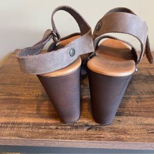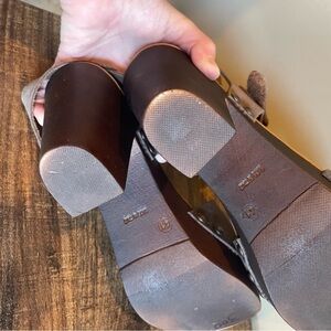 Mila Paoli Brown Leather Velcro Strap Wood Clog Sandals