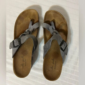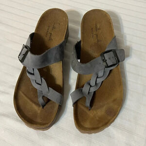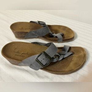 Mila Paoli Italy Genuine Leather Gray Braided Cork Wedge Sandals Size 8.5