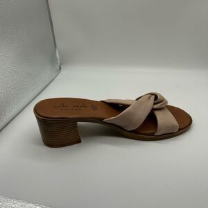 Soft knot sandals from Mila Paoli. Leather upper in beige. Leather sock and manmade sole 2” heel. Made in Italy. Size 6.5. Great preowned condition with minimal wear. See photos for full condition.