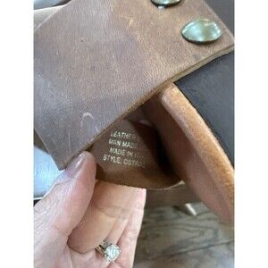 • Crisscross straps + brass-tone rivets