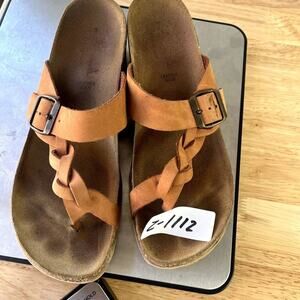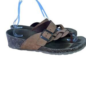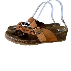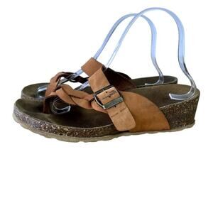 Mila Paoli Sandals Womens Sz 8.5 Slide Buckle Strap Wedge Toe Ring Brown Leather