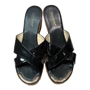 Mila Paoli black patent leather cork wedge sandals Made in Italy casual size 8