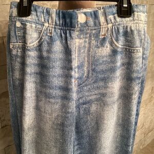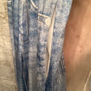 Material: Described as "denim" fabric that is soft and breathable, with a "sweatpants" feel for comfort