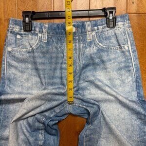 Features: Blue Denim Printed, Pockets, Elastic Waist, Faux Denim