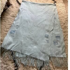 100% cashmere blue beautiful scarf with appliqué