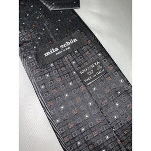 * Mila Schon Designer Tie 100% Silk Made In Italy Gray
