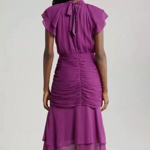 Mila Mae Plum Ruched Chiffon Maxi Dress Flutter Sleeves Lined Flowy Dress-EE9