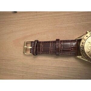 Milagro Watch Men Gold Tone Brown Faux Leather Band 40 MM New Battery 9"