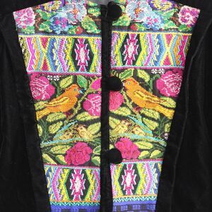 Milagros Hand Loomed Bird Floral Pattern Cropped Black Velvet Jacket Size Medium