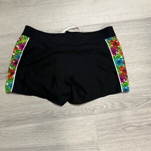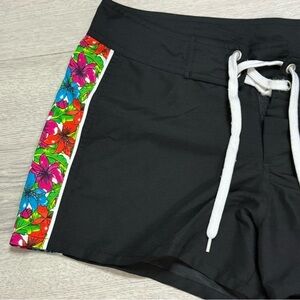 Swim Board Miken Shorts black women's shorts with vibrant floral accents. Perfect for a casual day out. Medium