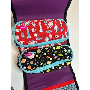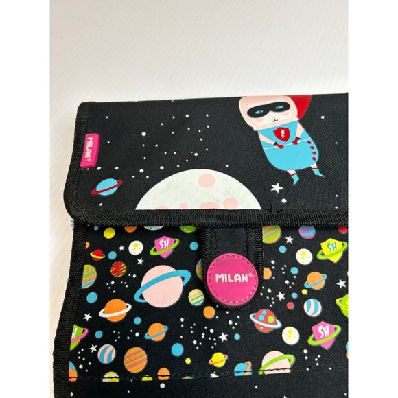 Carrying case with 2 removable pencil cases. Special Super Heroes Space edition. Glows in the dark.