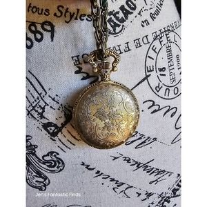 Milan Pocket Watch with Chain-link Necklace 39-46" Steam Punk Antique Gold