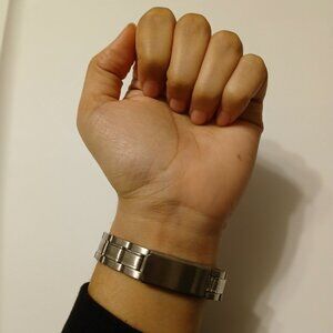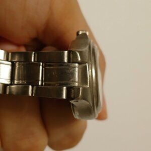 Needs a new battery. The wrist size is 6 3/4 inches. There are scratches on the crystal, case, and band. It's a classic minimalist style. Please view the photos. Thank you!