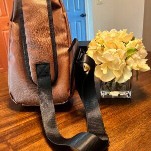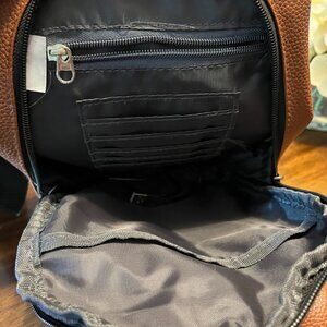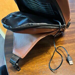 The Milan USB Charging Connector Port Anti-Theft Daypack Crossbody Sling Backpack is a stylish and practical accessory for both men and women. Made from vegan leather in a sleek copper color, this backpack features a convenient USB charging connector port for on-the-go charging. The anti-theft design adds an extra layer of security to keep your belongings safe while traveling. Perfect for everyday use, this backpack combines fashion with function for a versatile and practical accessory. New without tags.