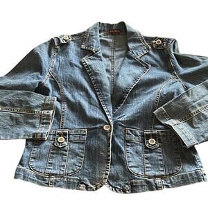 Milana Blue Denim Blazer Jacket Woman Size Medium Jean Pockets Casual