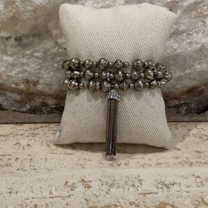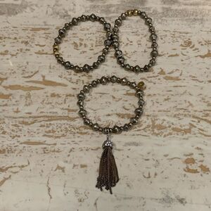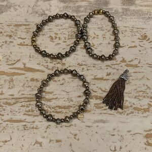 Gently worn Stella and dot Alani Tesla bracelets tech. Silver bead bracelets with detachable tassel. Can be worn single or all together. Some discoloration on the middle of the tassels pictured tassel is removable.