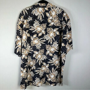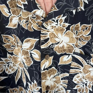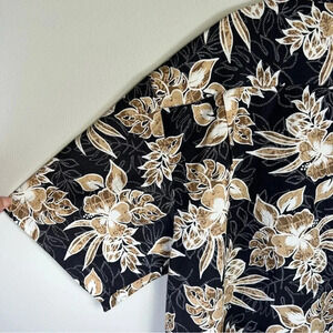 Milano Bay Hawaiian Shirt Black Tan Button Up Short Sleeve Pocket Floral Vacation Tropical Big and Tall Resort Cruise