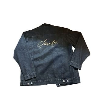 Milano Bay Size Large Black Denim Jacket with Gold Embroidery on Back