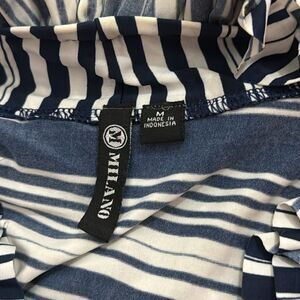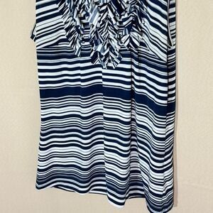 Milano Blue White Striped Sleeveless Frills Ruffled Neck Top Size M