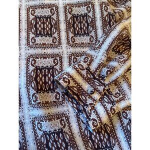 Milano Brown & Cream Long-Sleeve Button-Up Shirt L Polyester Vintage 70s Career