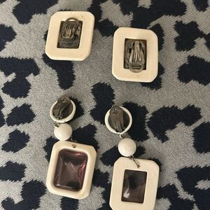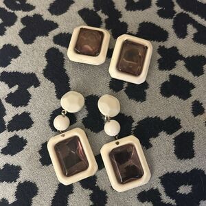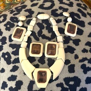 This elegant jewelry set features a stunning combination of cream and brown tones, perfect for any occasion. The intricate design adds a touch of sophistication to your ensemble. Comes with two sets of earrings.