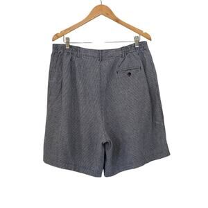 Milano Design Group Navy & White Mini Check Linen Blend High Rise Tailored Shorts, Size 20