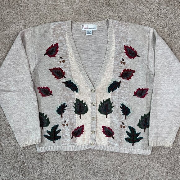 Milano Design Group Sweater Womens M Brown Fall Leaf Cardigan Vintage Autumn