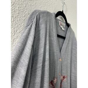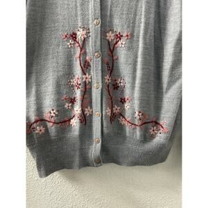 Milano Design Group Womans Size M Grey Cardigan Sweater Floral Embroidered VTG