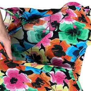 Milano Floral Tunic Sleeveless Faux Wrap Top Women 1X Plus Colorful Artsy Ruched, groovy, retro, 60s, 70s, flowers
