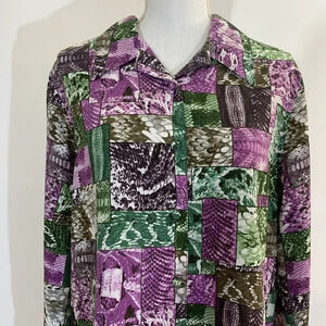Milano Green and Purple Button Up Blouse Womens Large Snakeskin.