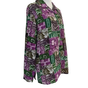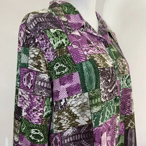 Milano Green and Purple Button Up Blouse Womens Large Snakeskin