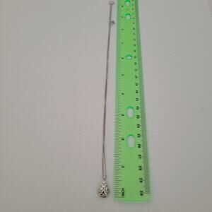 Milano Silver Necklace Pendant Tear Drop Chain 16-18 Rhinestones Minimalistic