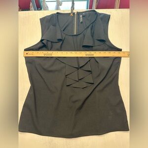 Milano Sleeveless Black Blouse Large Ruffle Front Zip Back Top Work Career Chic
