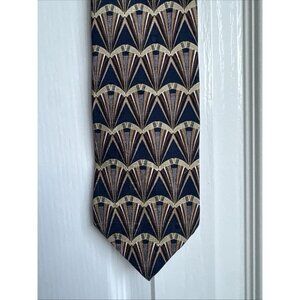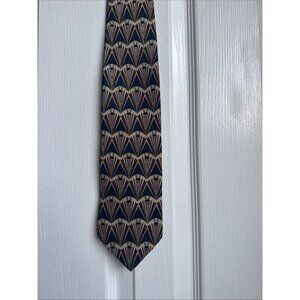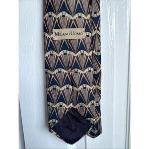 Milano Uomo Navy Gold Men's Necktie Geometric Pattern 100% Silk