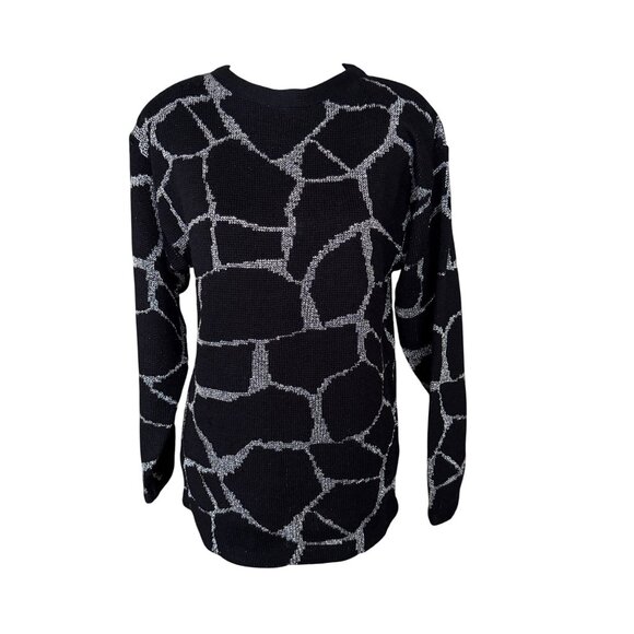 Milano Vintage 80s Black & Silver Abstract Pattern Sweater