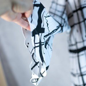 White and Black shirt by Milano Woman with abstract stitch pleated fabric.