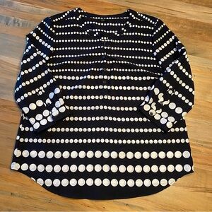 Milano XL Women’s Blouse Black w/ White Polka Dots 3/4 Sleeves 1/4 button Top