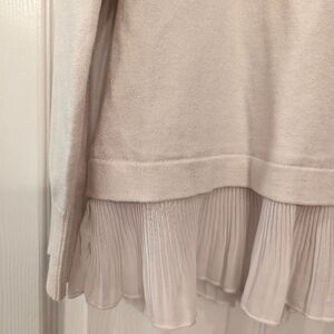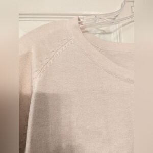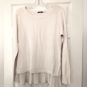 Milano cream wool bland crew neck pullover sweater ruffle sheer hem soft size Large