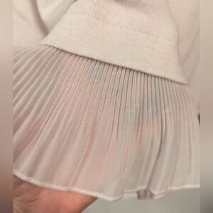 Milano cream wool bland crew neck pullover sweater ruffle sheer hem soft size L