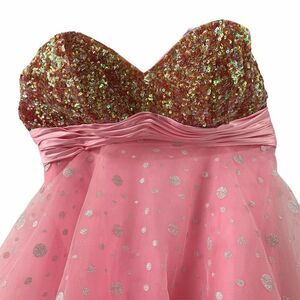 Milano Formals Pink Sequined Strapless Sweetheart Neckline Knee Length Fit & Flare Dress Pageant