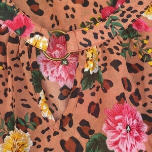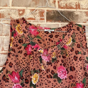 Mileage Leopard Print Floral Sleeveless Sheer Summer Blouse