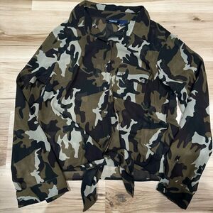 Mileage Lightweight Camo Button Down Tie Top Blouse Women’s Large