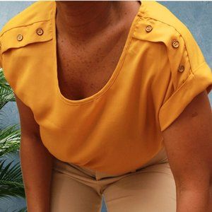 Mileage Women's Size L Short Sleeve Blouse Top Mustard Yellow