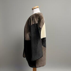 Milena Silvano is an independent womenswear label based in East Sussex, UK. The label combines the skill of traditional craft with avant-garde experimentation and spiritual values. Through its use of reclaimed and deadstock sheepskin, natural dyes and careful sourcing of ethical silks, Milena Silvano's collections marry an otherworldly, wandering aesthetic with imaginative and innovative feminist style. This style, made of 100% genuine shearling lambskin, features a diamond patchwork in variations of colors, with leather binding finishing. This could be worn reversed, so the suede side faces out (see photos). Designed and hand made in Sussex, England, this coat is in excellent, nearly-new condition. Original waist sash is not included. I am a top-rated seller and ship quickly!