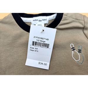 Miles The Label Baby Boy SZ 3 Months Lucky Bowling Pins Strike Beige Sweatshirt