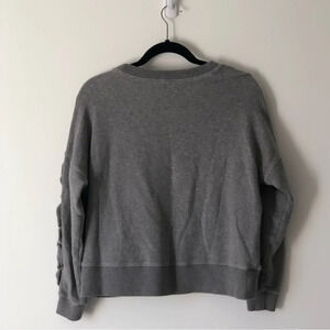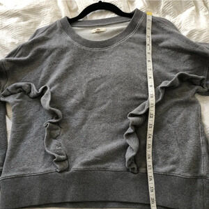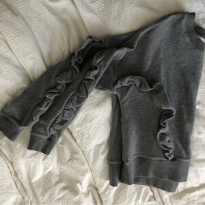 Mile(s) by Madewell Gray Ruffle Sweater. Ruffle detail across front and down sleeves.