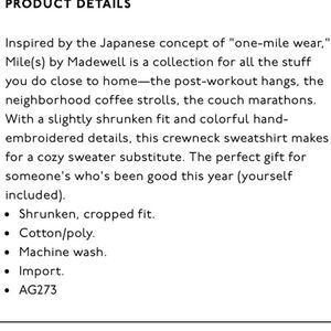 Miles by Madewell embroidered crop sweatshirt. XXS