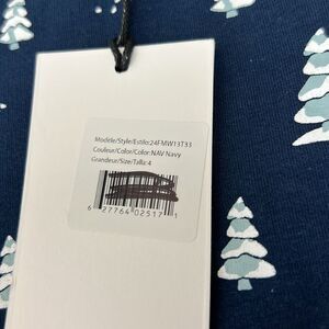 Miles the Label Navy and white Tree Holiday print Winter Sweatshirt size 4 NWT