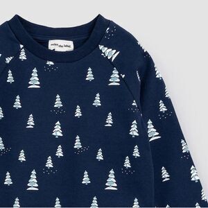 This navy sweatshirt features a frosty fir tree print and is great for the winter (and perfect as a subtle nod to the festive season). Made from organically grown cotton fleece, the sweatshirt is cozy and soft, offering some much-needed warmth for the colder months. The rounded neckline and ribbed cuffs make it easy to pull over their heads on chilly mornings and remove after a long day. There are navy or grey joggers available in the same range, to create a cozy snow-day outfit that's easy to wear.